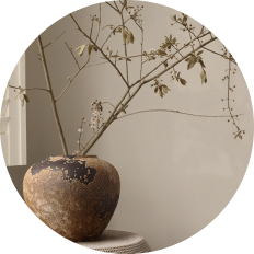 和風モダンインテリア 枯枝飾り付き横筋模様花器