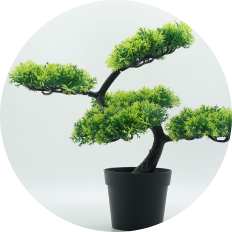 和風モダンインテリア 古布模様の円錐植木鉢 枝飾り付き